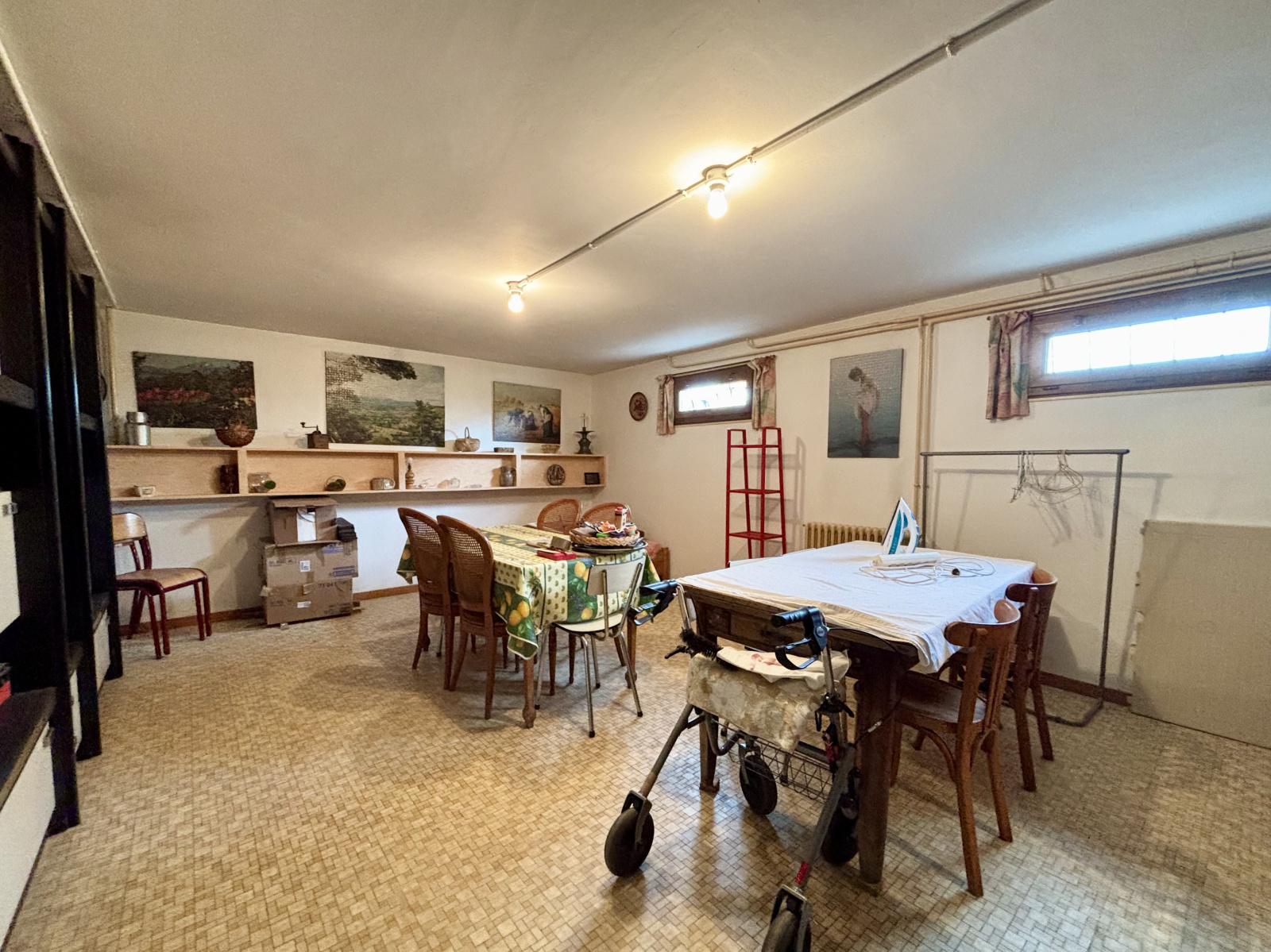 Le sous-sol total offre un garage spacieux, une pièce de 27m² chauffée et éclairée (pouvant servir de salle de réception, salle de jeux…), ainsi qu’une cave.