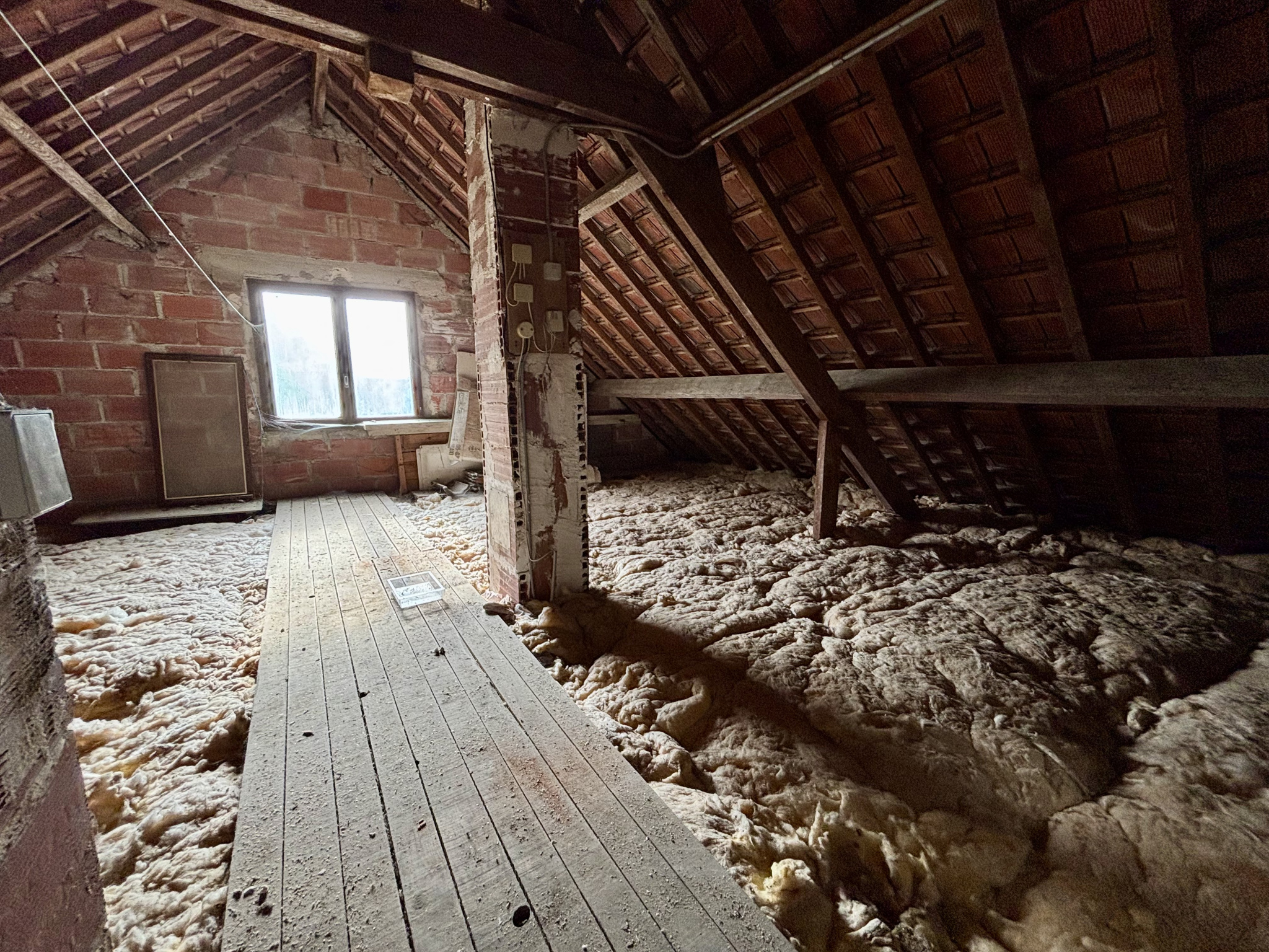 Au premier étage vous aurez la possibilité d’aménager les combles, un accès par un escalier a déjà créé ainsi qu’une fenêtre.